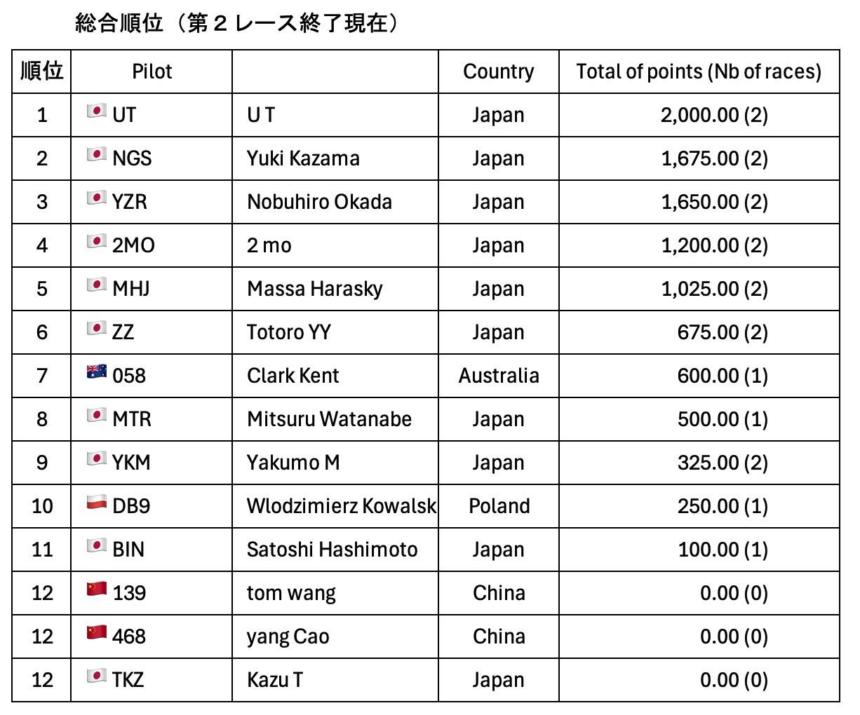 さて、これでアジア予選は第二日目まで終わってUTさんの二連勝、合計得点は以下の通りです。これからどのような追い上げがあるのか、さらにレースが白熱してくることが期待されます。