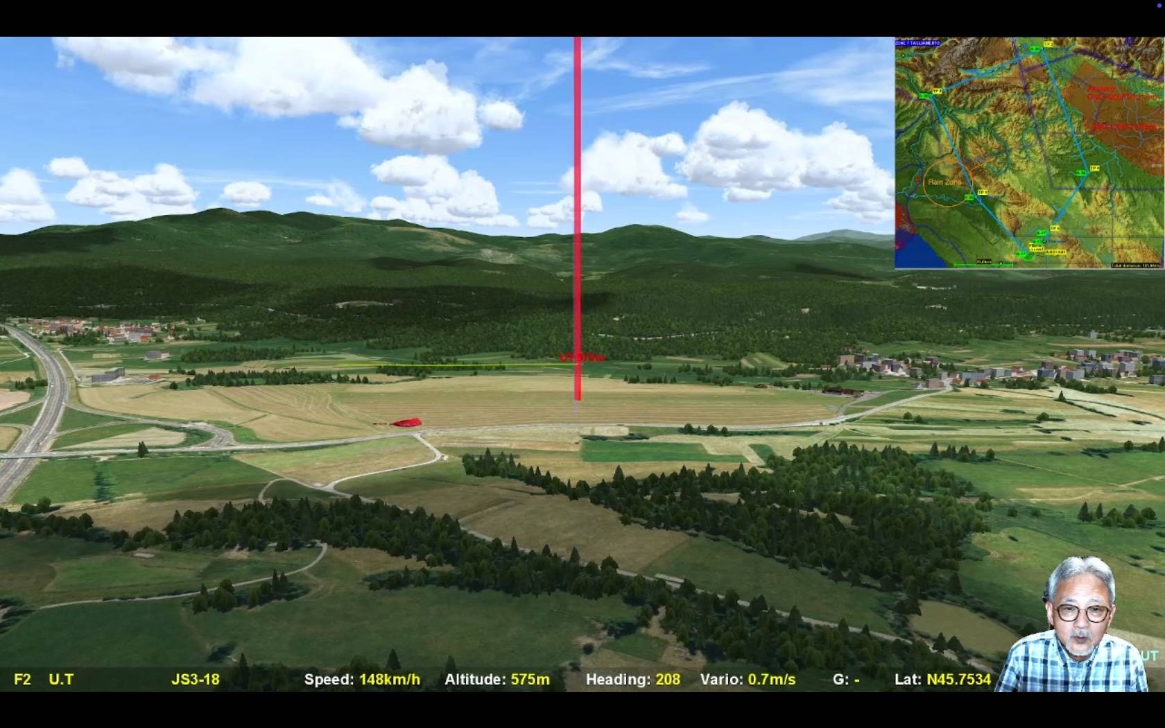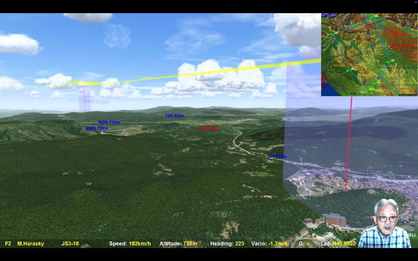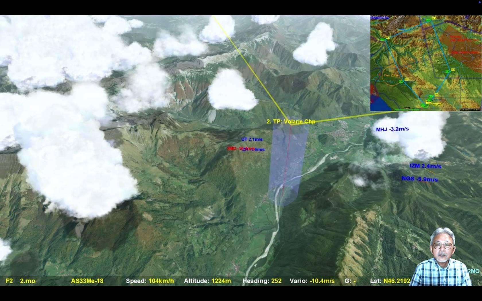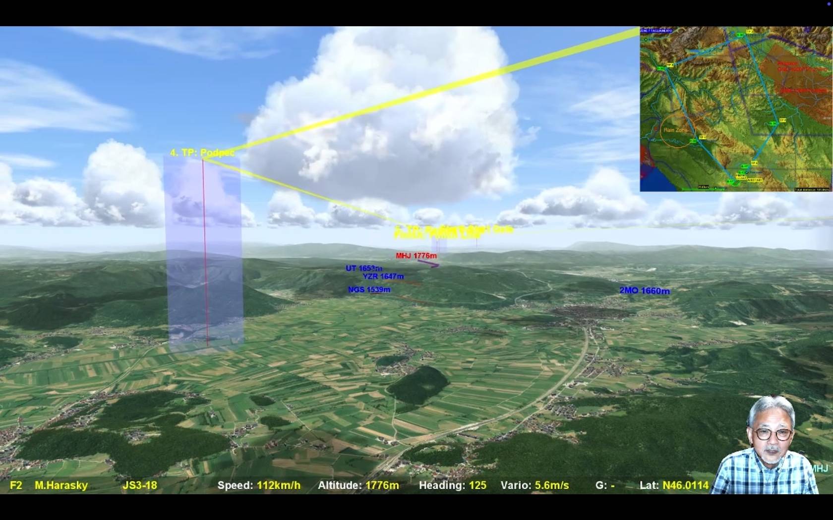 そのままMHJさんがTP3を先頭で周回するのですが、TP3の直後はタスクラインがリッジの影になるような位置関係にあるので高度管理が悩ましいところ、実際かなりの沈下帯があったようで皆さん苦労していたようです。そこで特徴的だったのが進行方向に積雲がまばらなところをやや速度を控えめにしながらも前進して行くUTさんと、タスクラインを離れながらも確実に高度を獲得してから前進しようというMHJさん。両者の間が開いてきます。