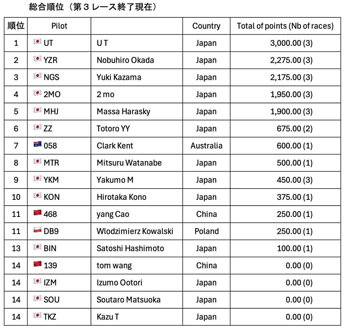 さて、次のレースは7月23日、更なる熱戦となることを期待しています。また、引続き実況中継も予定していますので、レースに参加しない方もぜひ観戦してグライダーシムを使ったレースの楽しさを味わって下さい。