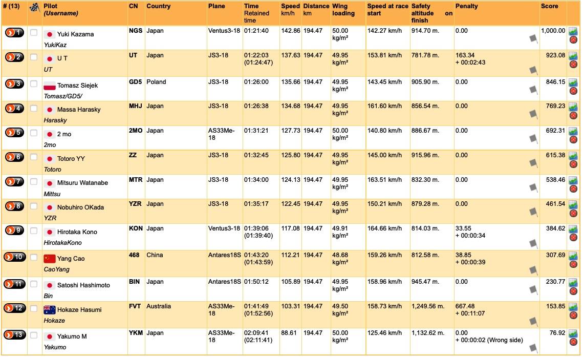 グランプリアジア予選第6戦の結果です。大変遅くなりましたが、FAI事務局で点数集計にあたり選手の参加資格を確認していて公式発表を待っていました。今考えれば先に最終戦の様子をお知らせするほうが良かったですね。申し訳ありません。