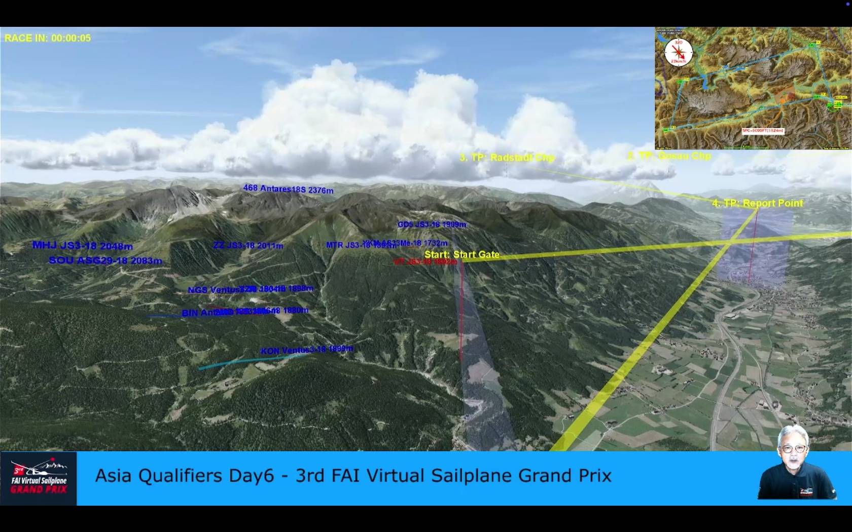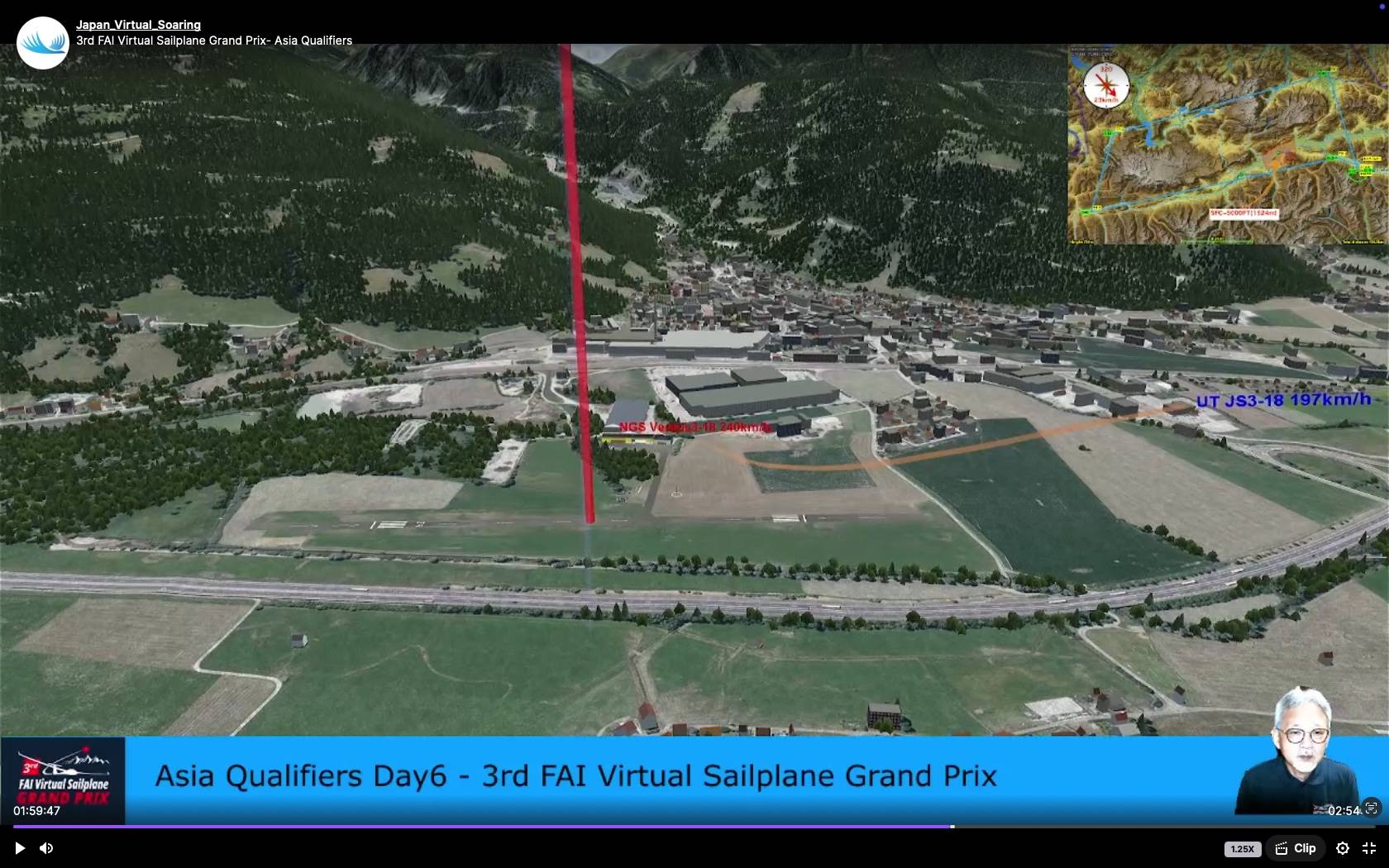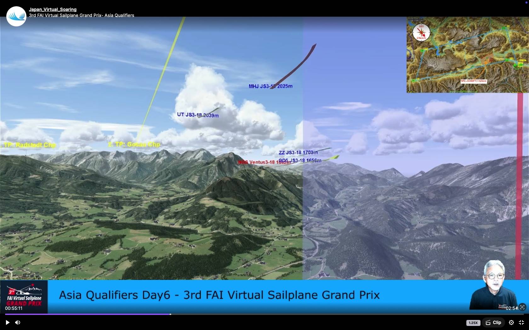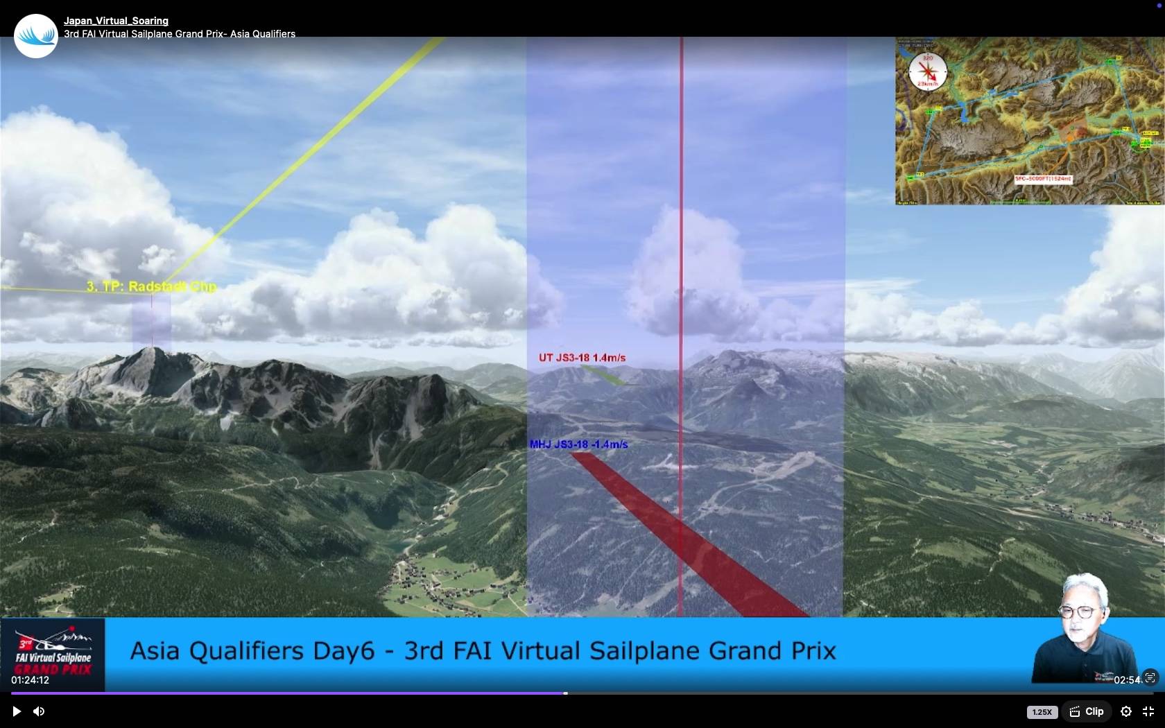 第1レグを抜けて最初にTP1を周回したのはUTさん、しかし後方からMHJさんが十分に高度を持ってぐんぐん追いかけてきます。