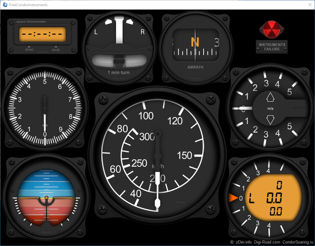 私はこのFree Condor Instruments (FCIS)をCondor1の時には良く使っていて、第二画面またはLANでつながった別PCにきれいな計器画面を表示することが出来たので結構気に入ってました。こんな感じの画面で、画面サイズや各計器のレイアウトは自由に作ることが出来ます。Haraskyさんのリンク先にある写真はちょっと違うようですが、SimKitsなんか買わなくてもパネルの裏側にモニター貼り付けて計器の穴から計器が見えるようにするとそれらしくコックピットが出来ますね。
