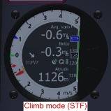 (イ) Total Energy Compensated Vario値:バリオ機器が検知する大気の昇降値からグライダーの運動エネルギーの変化から発生する昇降値を減じて、上昇風(下降風)によるグライダーの昇降値を計算したもの。これによりパイロットのスティック操作による昇降分を差し引くことが出来るが、その他にもガスト等による影響があることに注意。