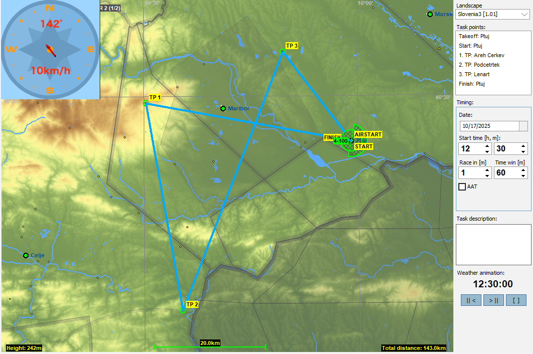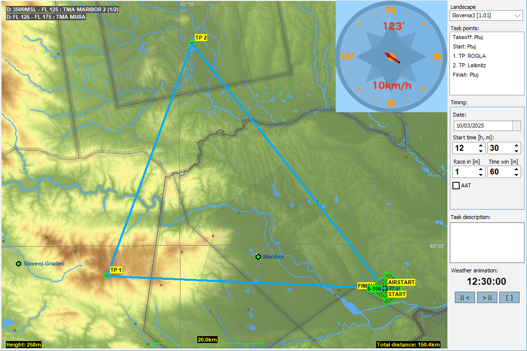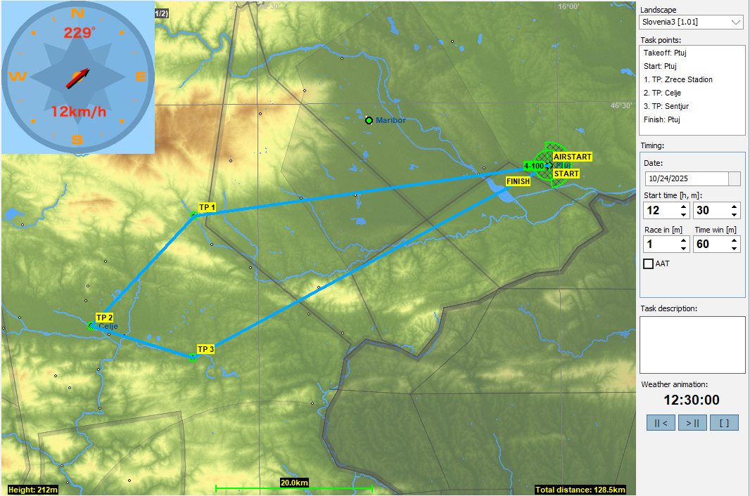 10月のJP Friday Flightではスロベニア北東部に位置するPtuj(プトゥイ)を起点とするタスクを作成しました。今回使うAPはPtujの町からは東に5km程離れたところに有るPtuj Airport。ここはAeroklub Ptujの運営するAPで動力機、グライダーから模型まで様々な航空スポーツを楽しんでいます(HP、動画)。2024年にはSlovenia Glider Championshipが開かれたそうです。