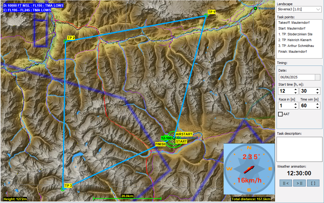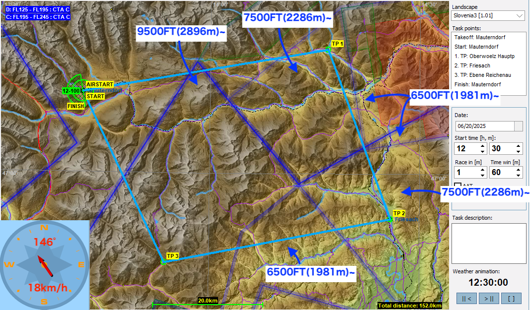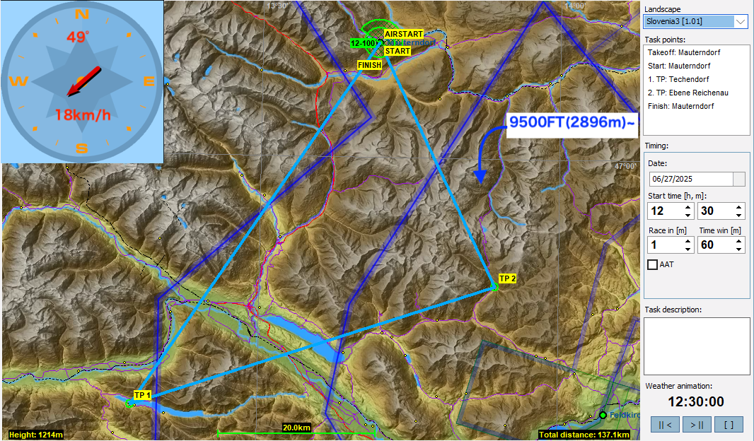 実は11月まではタスク開催日とCondorのタスクを同じ日付にしていたのですが、さすがにヨーロッパの晩秋ともなると太陽高度が下がりCondorではサーマルがなかなか出来なくなってきました。そこで12月からは日付を半年戻すことにしたので、今月のタスクは2025年6月の設定、太陽高度が十分あるのでサーマルもしっかり出てくると思います。