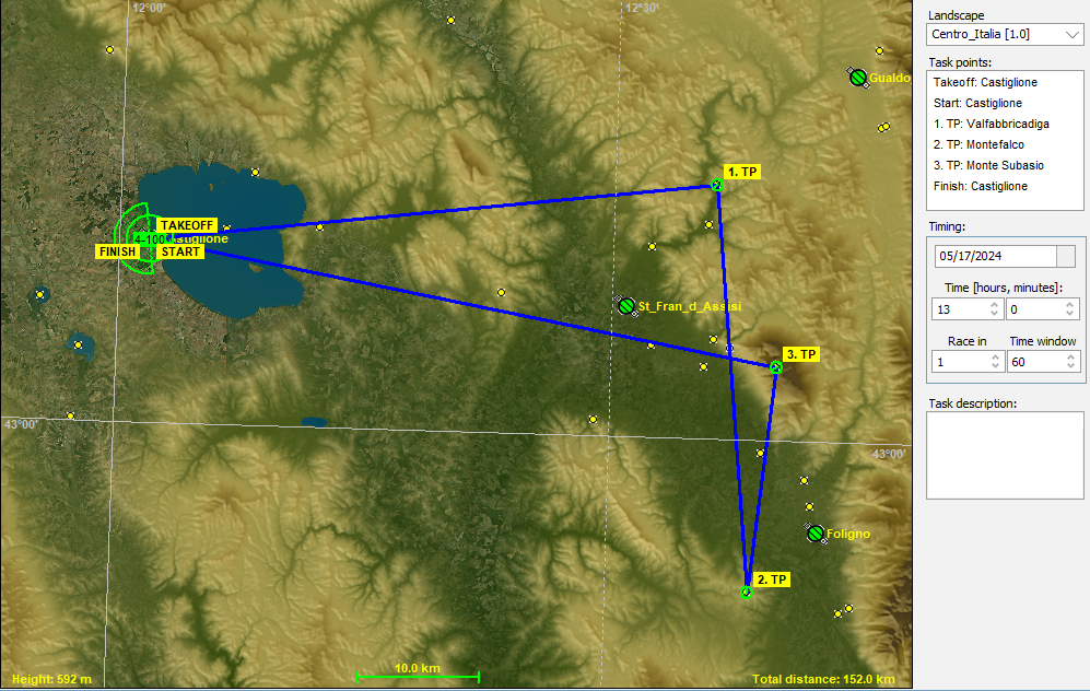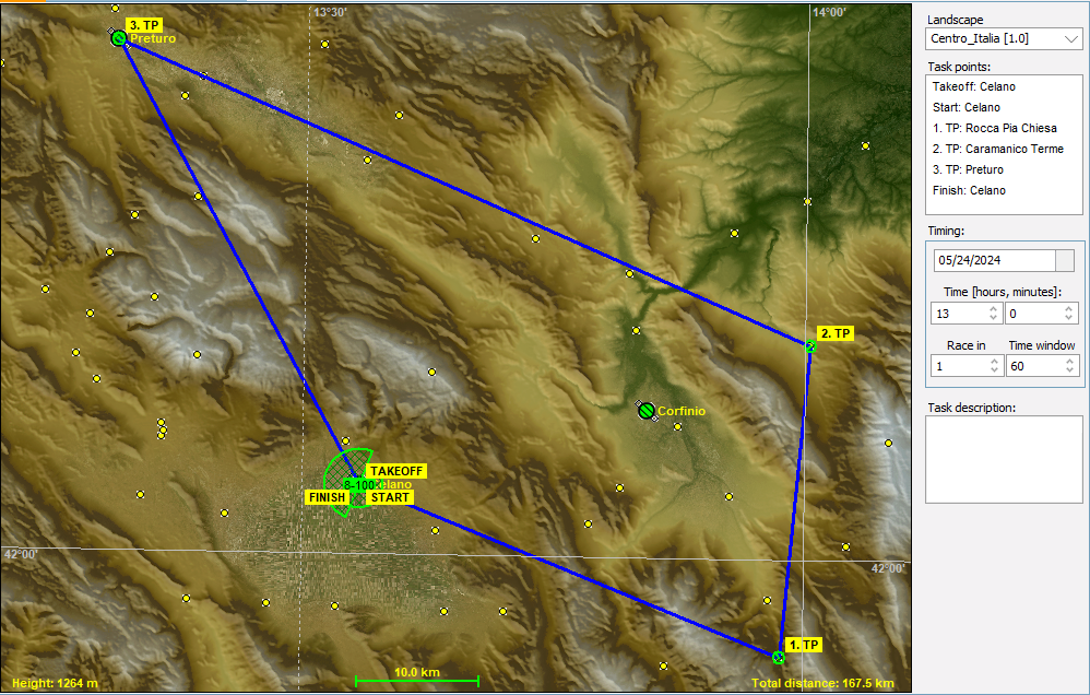 内陸のサーマルレース。ゴール直前にSeguiさんのシーナリーで良く見る気球がぷかぷか浮かんでいます。ちょうどゴール高度ギリギリのところにいるので注意して下さい。引っかけるとグライダーは翼がもげます。