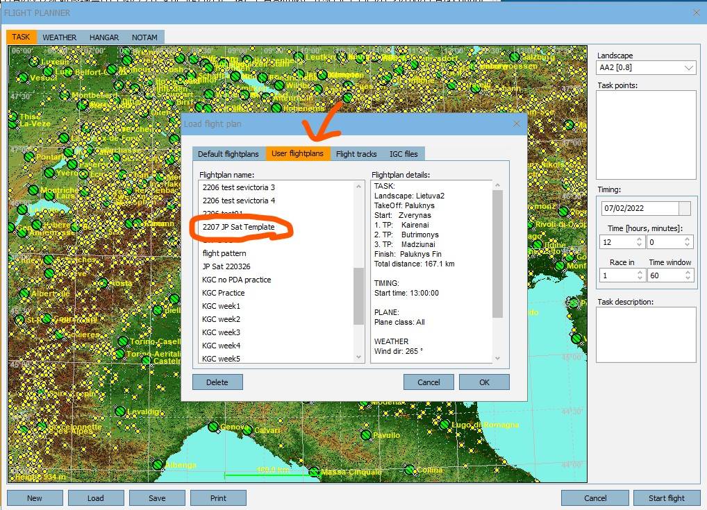 以下、Flight Planのテンプレートを作りましたので、ドキュメントフォルダ内のCondor¥FlightPlansフォルダにコピーしてお使いください。User FlightplansからJP Sat. template.fplをLoadしてタスク作成後に適当な名前を付けて保存して、Forumあてに送ってください。ナビゲーションメニューにUploadページを作っておきます。なお、締め切りは一応6月18日(土)としておきますがタスクができ次第送っていただけると嬉しいです。皆さんの投稿をお待ちしております。