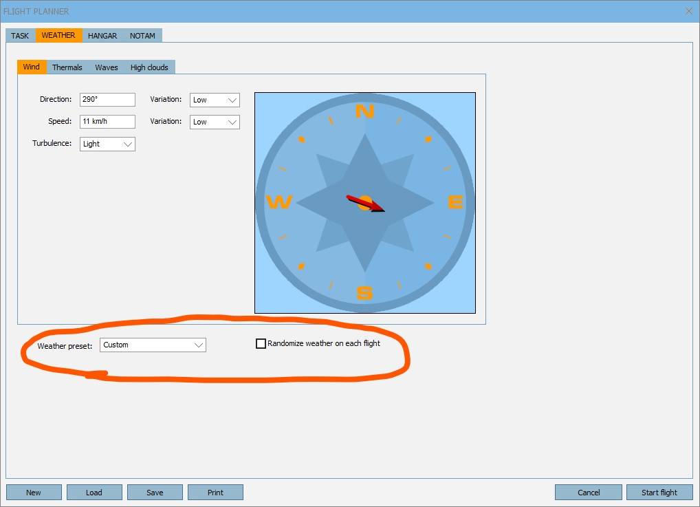 山越えがある場合は、リッジ風が十分にあって乗り越えることができるときは良いのですが、そうでない場合は雲底高度に注意ください。CondorではおおむねWhether画面で設定した雲底高度が山間地では斜面からの高度になるのですが、そうはならないことも多いので高い山を越えていくタスクの場合は山越え地点周辺の気象状況を確認しておいてください。