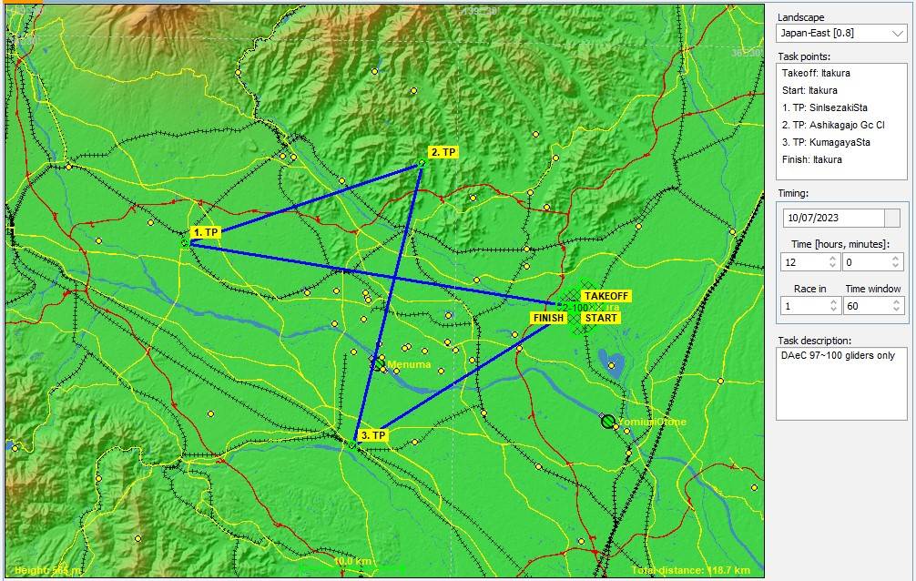 10月は久しぶりにJapan-Eastを飛びます。グライダークラスはちょっと趣向を変えて、クラブクラスの中でハンデ97〜100の機体のみ。よって、出場参加機体はASW15、Libelle、StdCirrus、ASW19、DG101Gの5機種のみとします。Condorの設定上、サーバには他の機体でも参加可能ですが、Condor Clubの結果集計では受け付けてくれなくなる(と思う)のでご注意下さい。