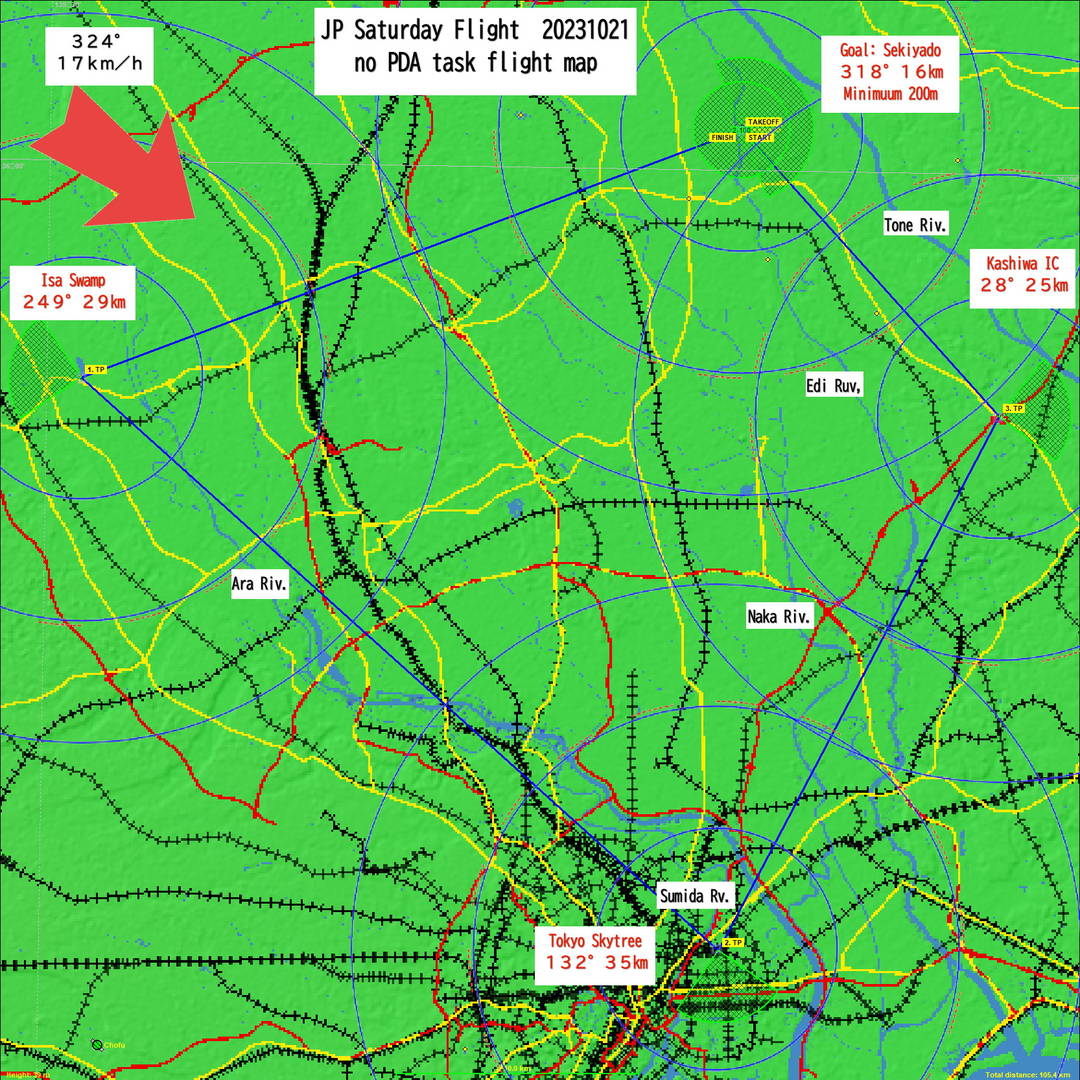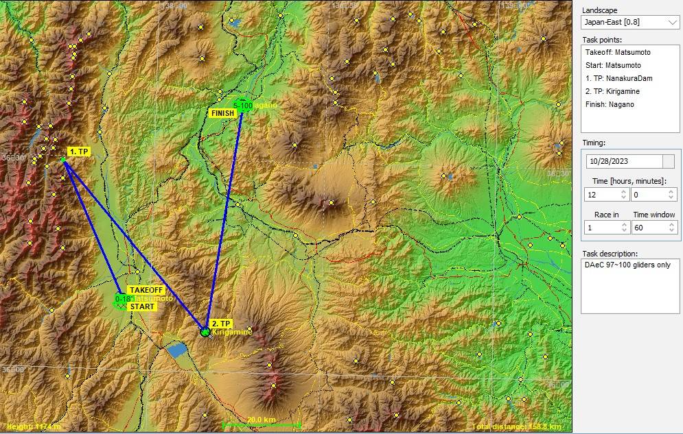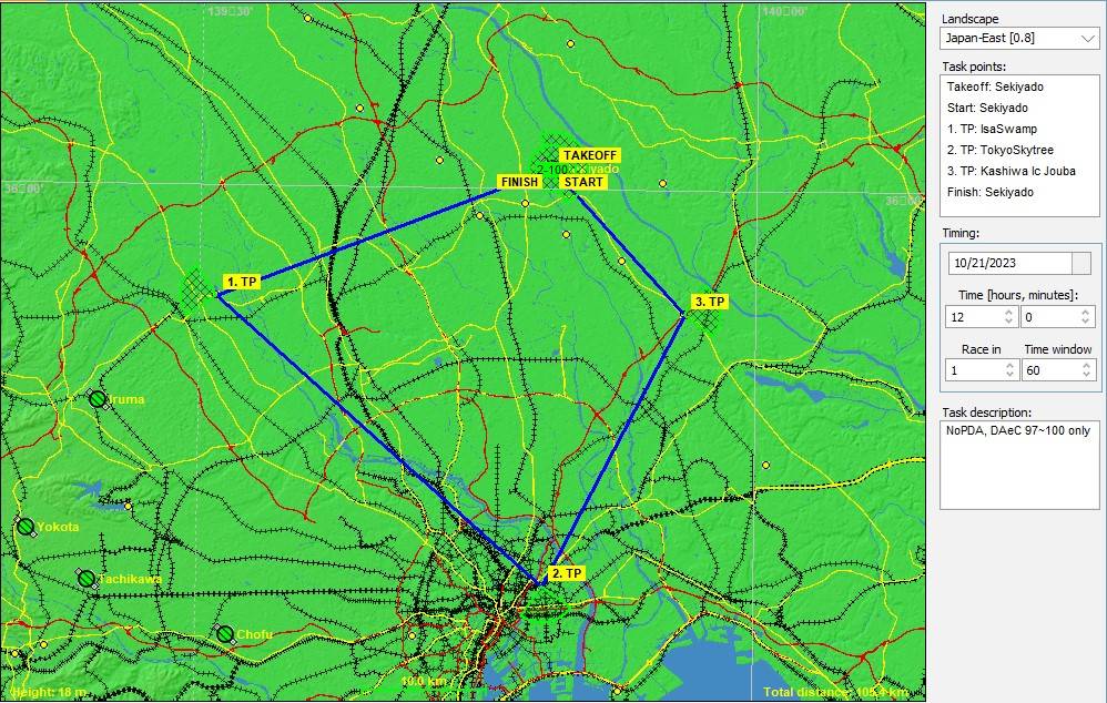なお、Condorでno PDAのタスクを飛ぶのが初めての方はこちらのページの解説やこちらの動画をみてスタートや旋回点通過の練習をしておいて下さい。動画ではCondor V1を使っていますが方法は同じです。