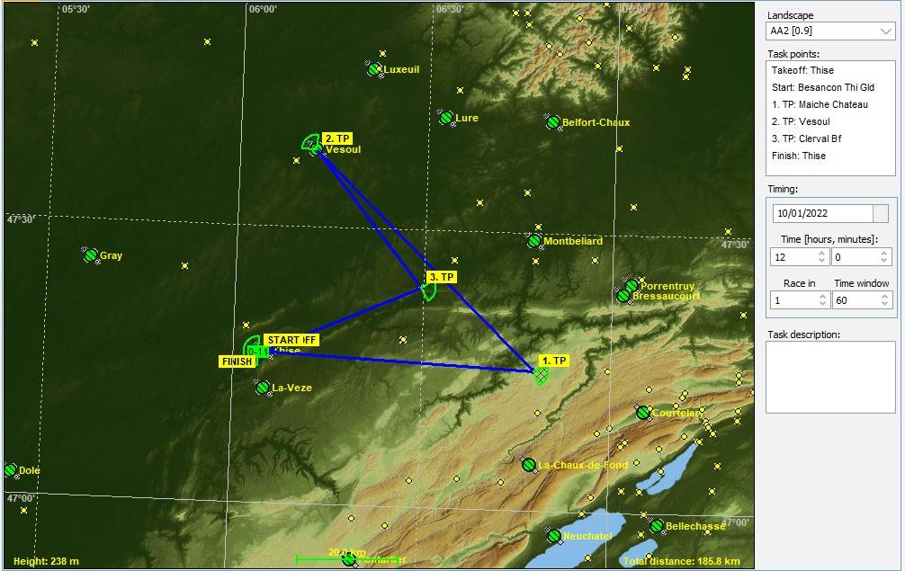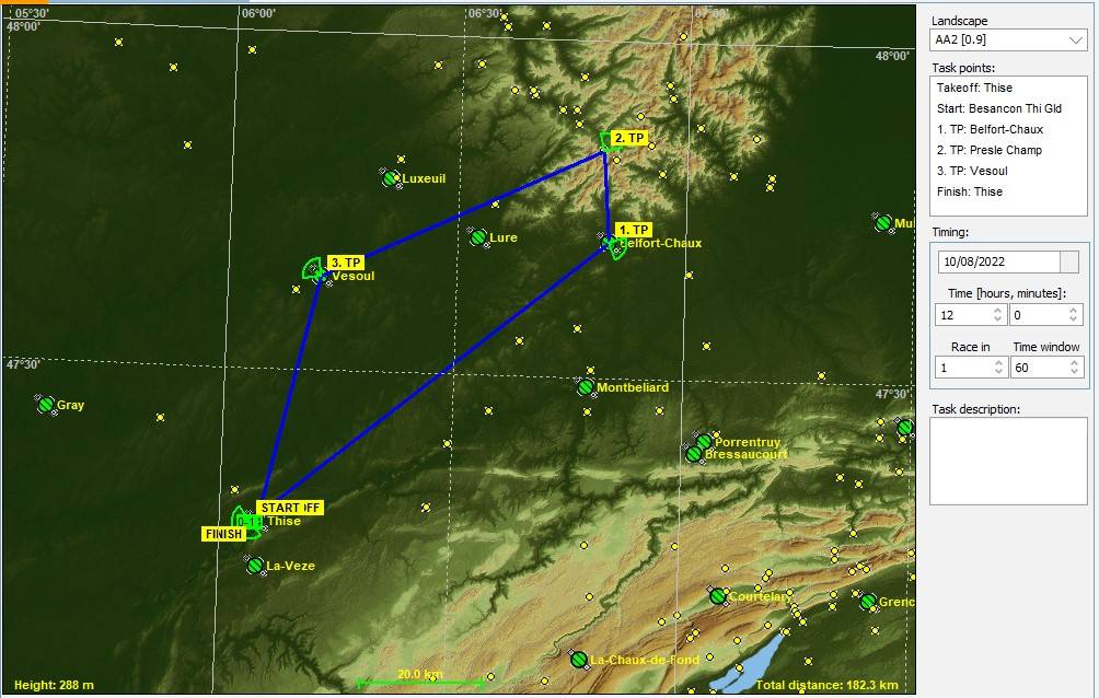 10月前半はフランスの一番東の端。スイスとの国境付近が舞台。ブザンソンの近くにあるThise(ティーズ)の飛行場からの出発・ゴールのタスクです。