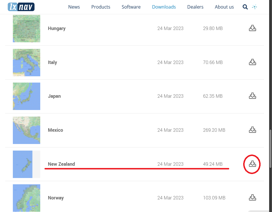 ・次に今回目的のNew ZeaLandの右側にあるダウンロードアイコンを選択し、