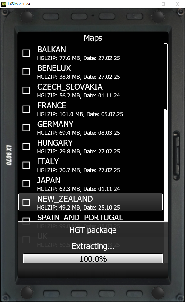 ・選択できれば下記のように圧縮ファイルがLXNav側で自動展開されます。